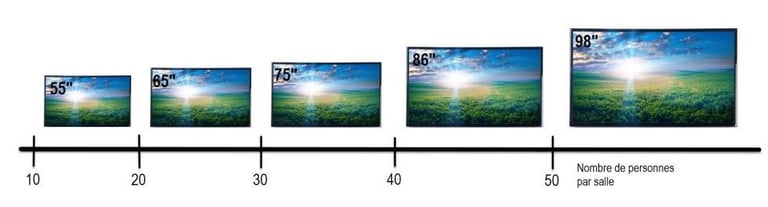 86’’ et plus : grandes salles, amphithéâtres ou espaces collaboratifs ouverts.